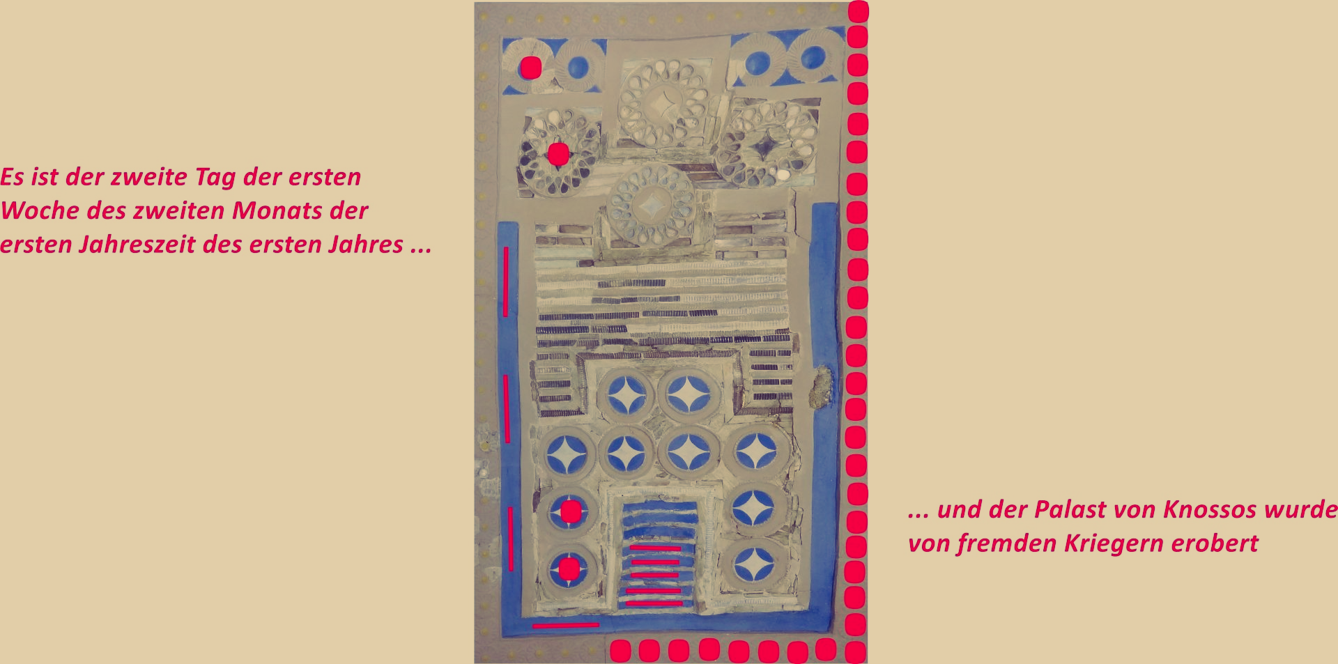 Dies ist zwar nur ein fiktives Datum und ein ebenso fiktives Ereignis, aber so könnten die Minoer auf Kreta ihre Zeitrechnung benannt und auf einem Kalender dargestellt haben.